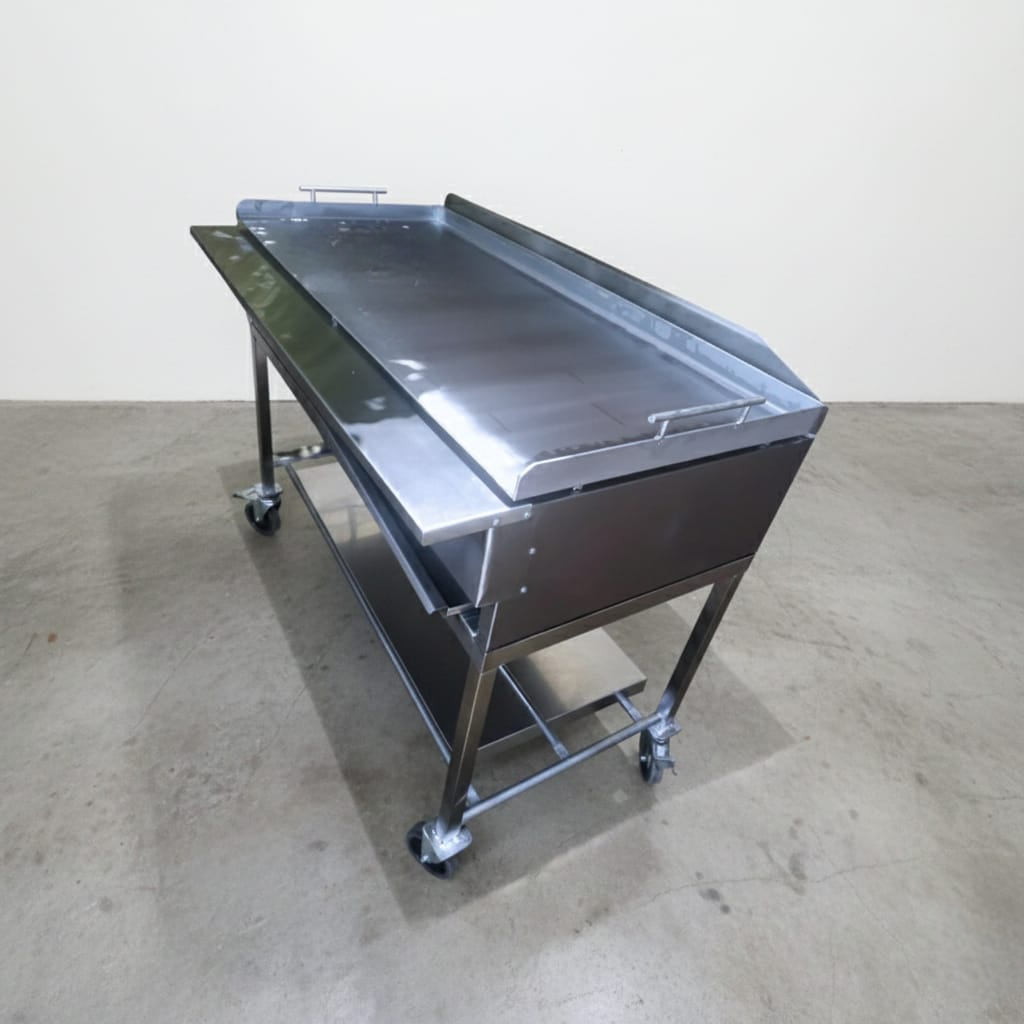 Hermosa plancha (comal) grande de 1.30 x 0.6 m, elaborada en acero inoxidable.
